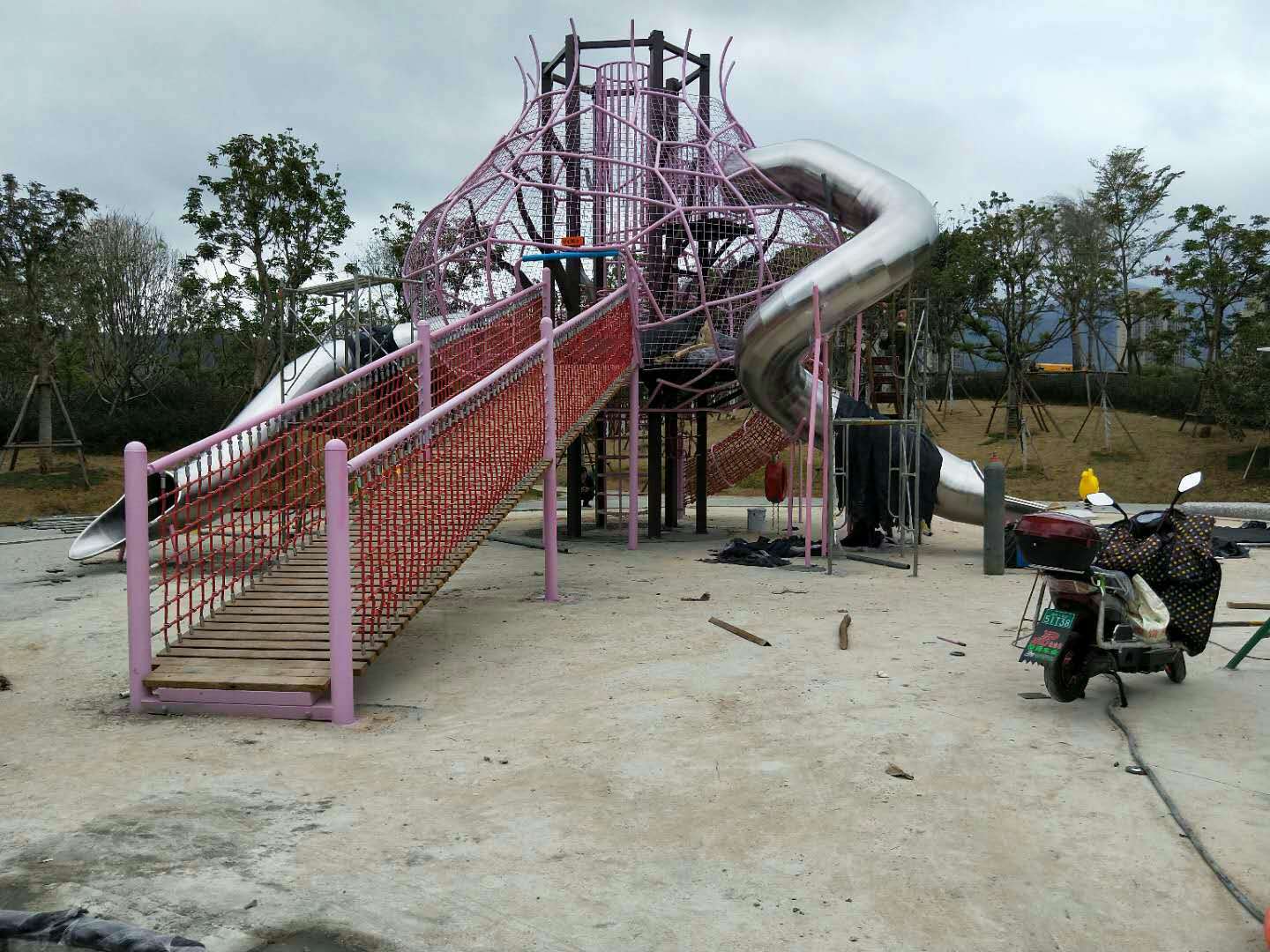 福州牛崗山公園大樹造型滑梯完工